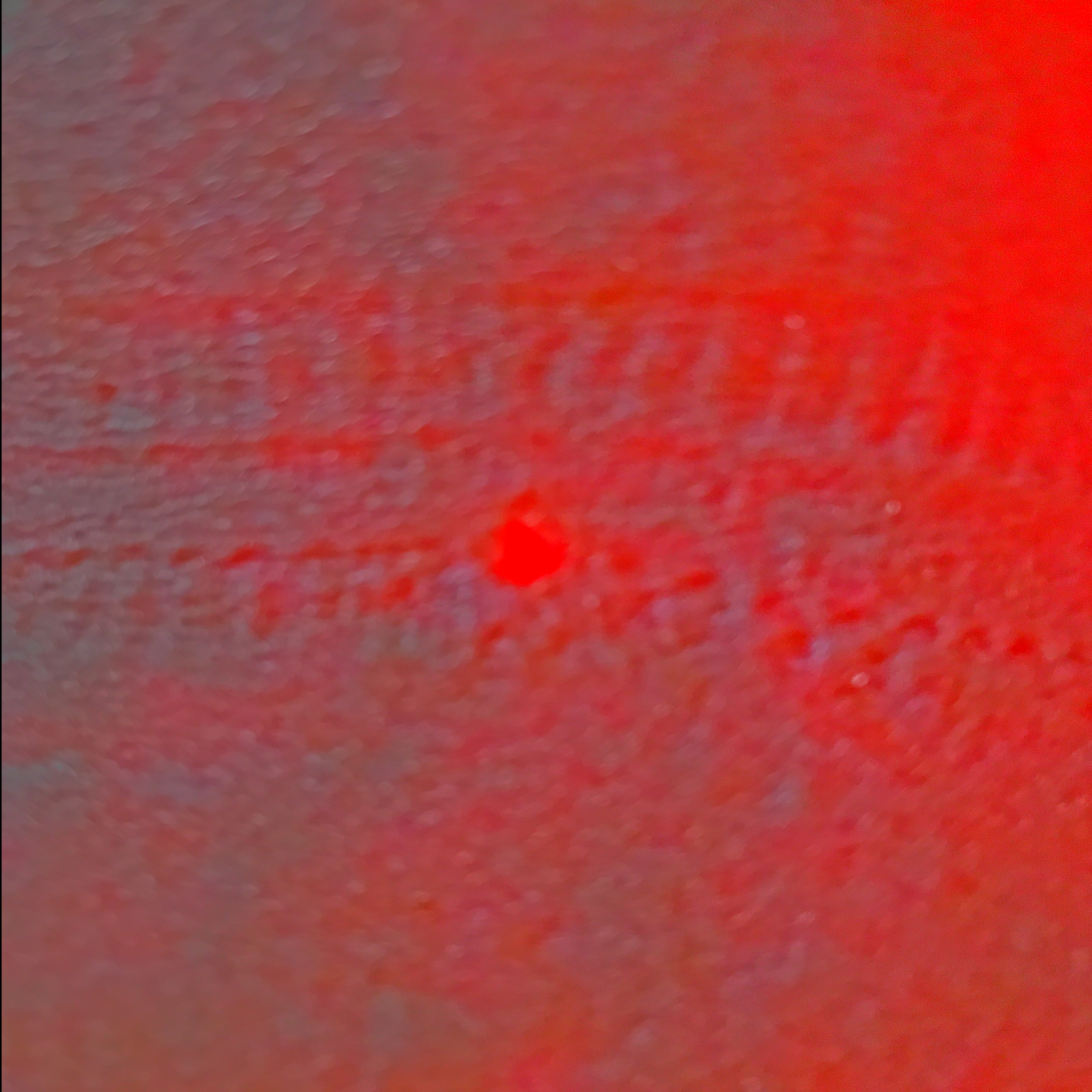 So I had set up a macro lens and was soon photographing. Initially, I started with single water droplets on the tin and looked for the observer in the reflection (from Derges the observer observed) but the droplets soon dried out. Another droplet was placed almost directly on top of the water stain. As I worked in the outdoors, dust and pollen fell onto the miniature set. A couple of reasonably deep themes emerged, signs of things past, now replaced and dust as a metaphor for our mortality and pollen as a metaphor for renewal and replacement.